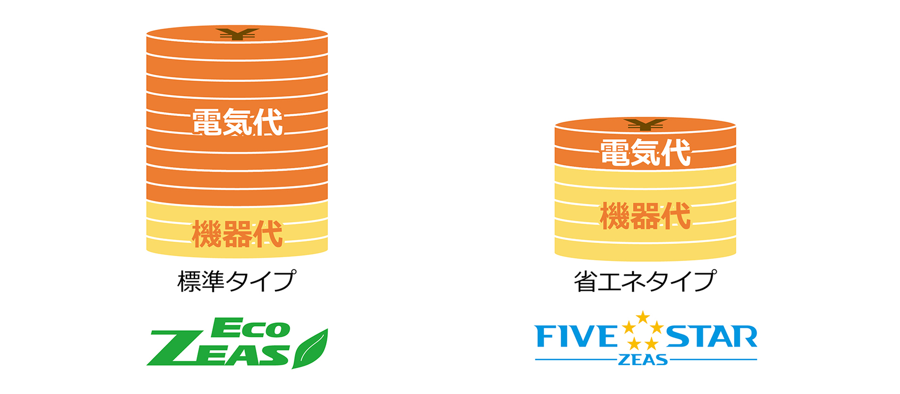 ダイキンの省エネタイプの店舗オフィス用エアコンFIVE STAR ZEASでは、機器のハード面での省エネ設計に加えて、センシング機能や制御技術で、快適でありながら節電に貢献する機能が搭載されています。そのため標準タイプと比べて電気代を抑えられます。