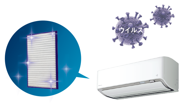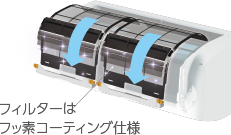 集塵フィルターに、抗ウイルス作用のある静電フィルターを採用しています。