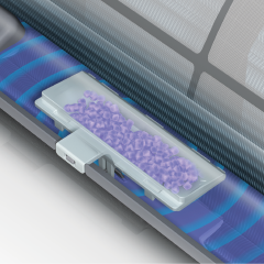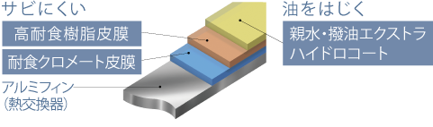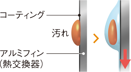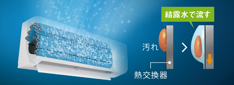 室内機に発生する結露水の受け皿(ドレンパン)にたまった水に銀イオン抗菌剤が溶け出し、菌の繁殖を抑制※1します。