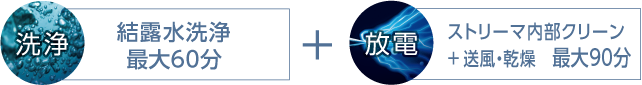 ●付着したホコリやカビをすべて落とせる機能ではありません。●水内部クリーンには最大52円(1.67kWh)の電気代がかかります。電力料金目安単価31円/kWh(税込み)[令和4年7月改定]で計算。
