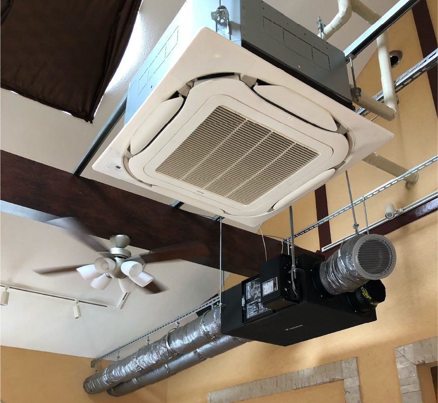 建物の構造から露出設置タイプを設置することになりましたが、音も静かで気になりませんし、なによりお客様に換気強化をアピールすることもできるので、結果的にこのタイプを導入して良かったですね。