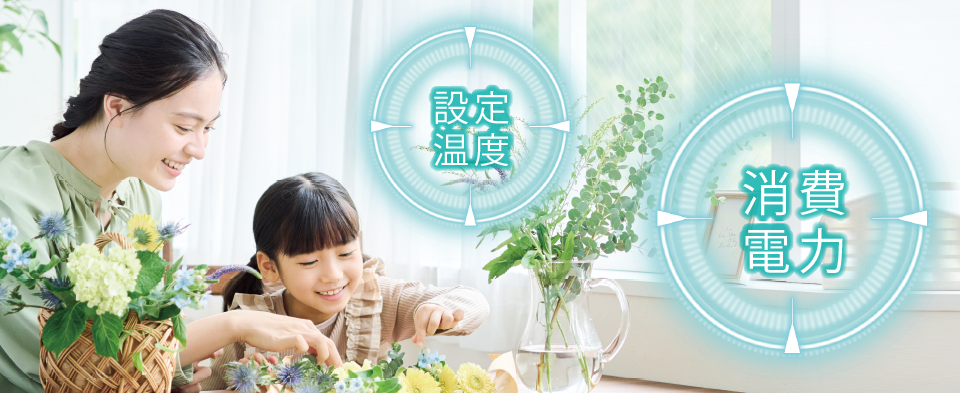 室温が設定温度に達し安定すると節電を重視した運転を実施。低回転で効率の良いスイングコンプレッサーの働きにより消費電力量を約20%※1削減。その時々の空調の必要能力に合わせて、かしこく、無理をしすぎない節電運転を行います。