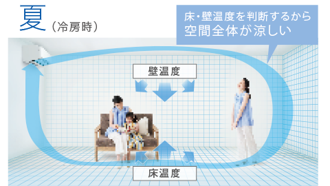 ※エアコンの設置位置や室内の環境によって、検知範囲が異なります。