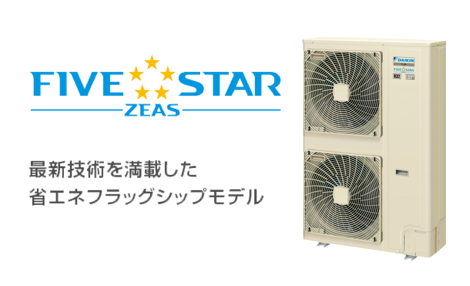 お店やオフィスの電気代の節約には、業界トップクラス※2の省エネ性を実現した省エネフラッグシップモデル『FIVE STAR ZEAS(ファイブスタージアス)』シリーズをオススメします。